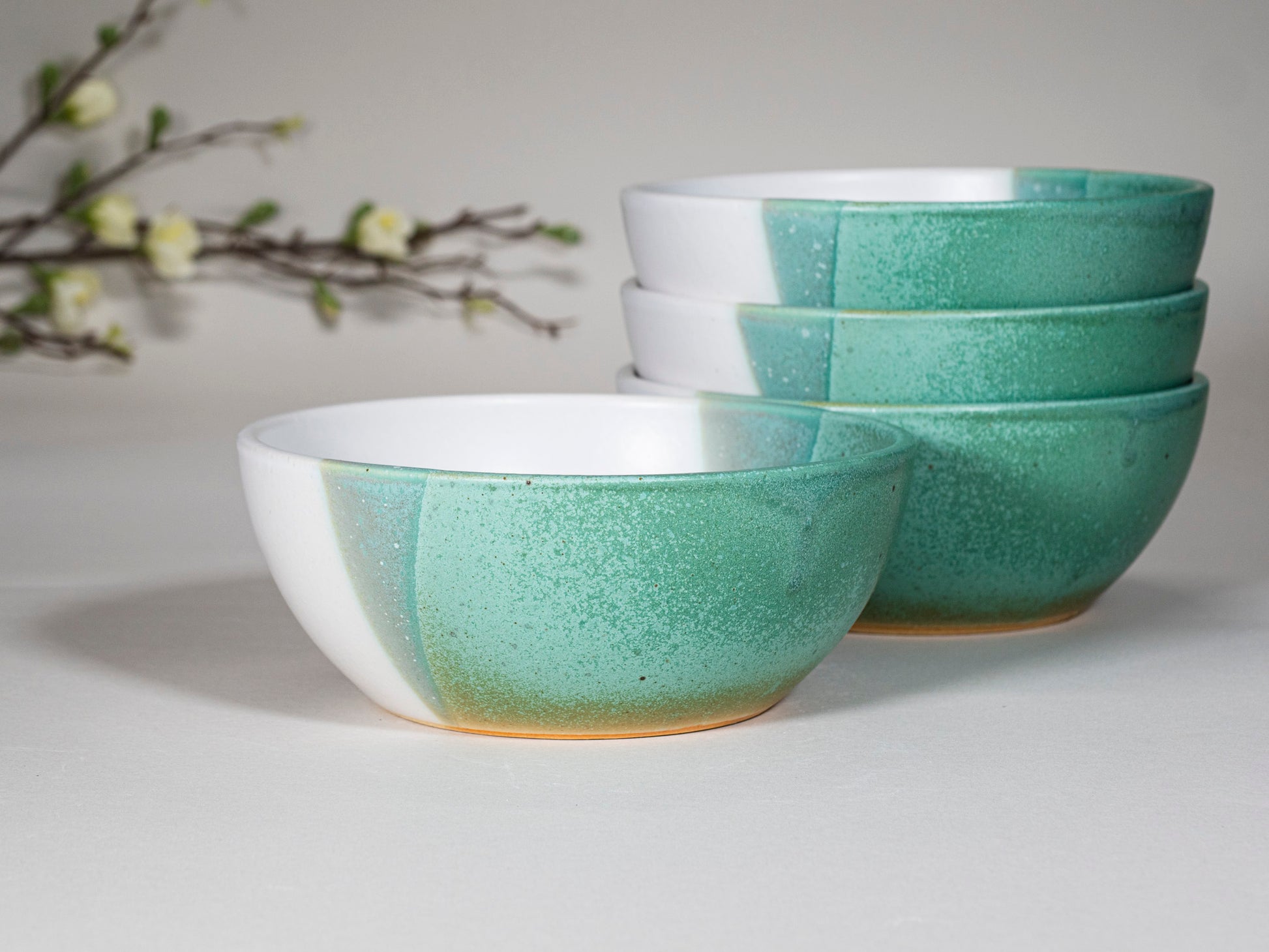 Breakfast Salad Soup Bowl Green White Stoneware Handmade