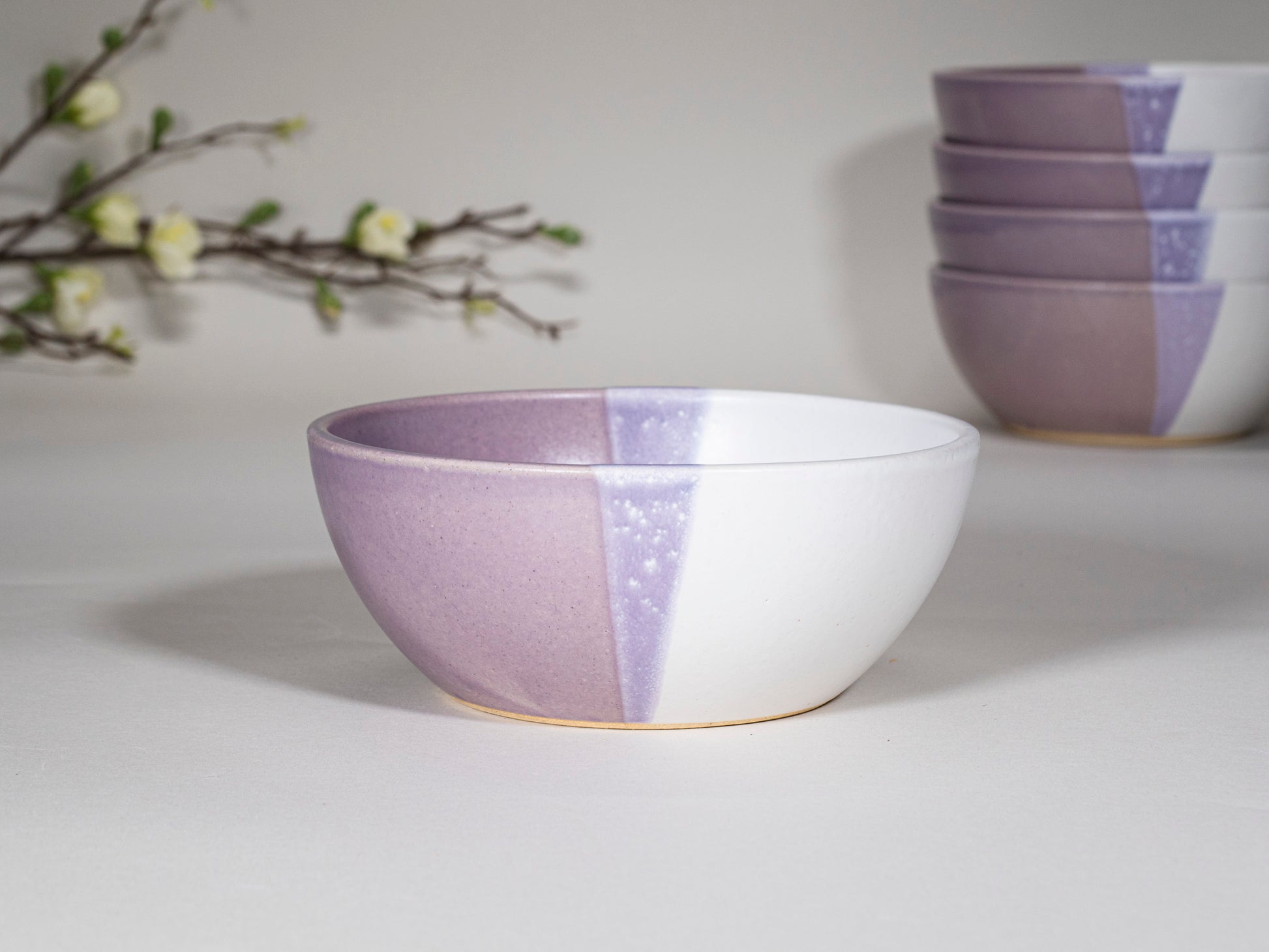 Earthy small bowl in purple white is perfect breakfast bowl for serving cereal, oatmeal, yogurt and fruit but also can be used as a small lunch bowl for salads and soups.