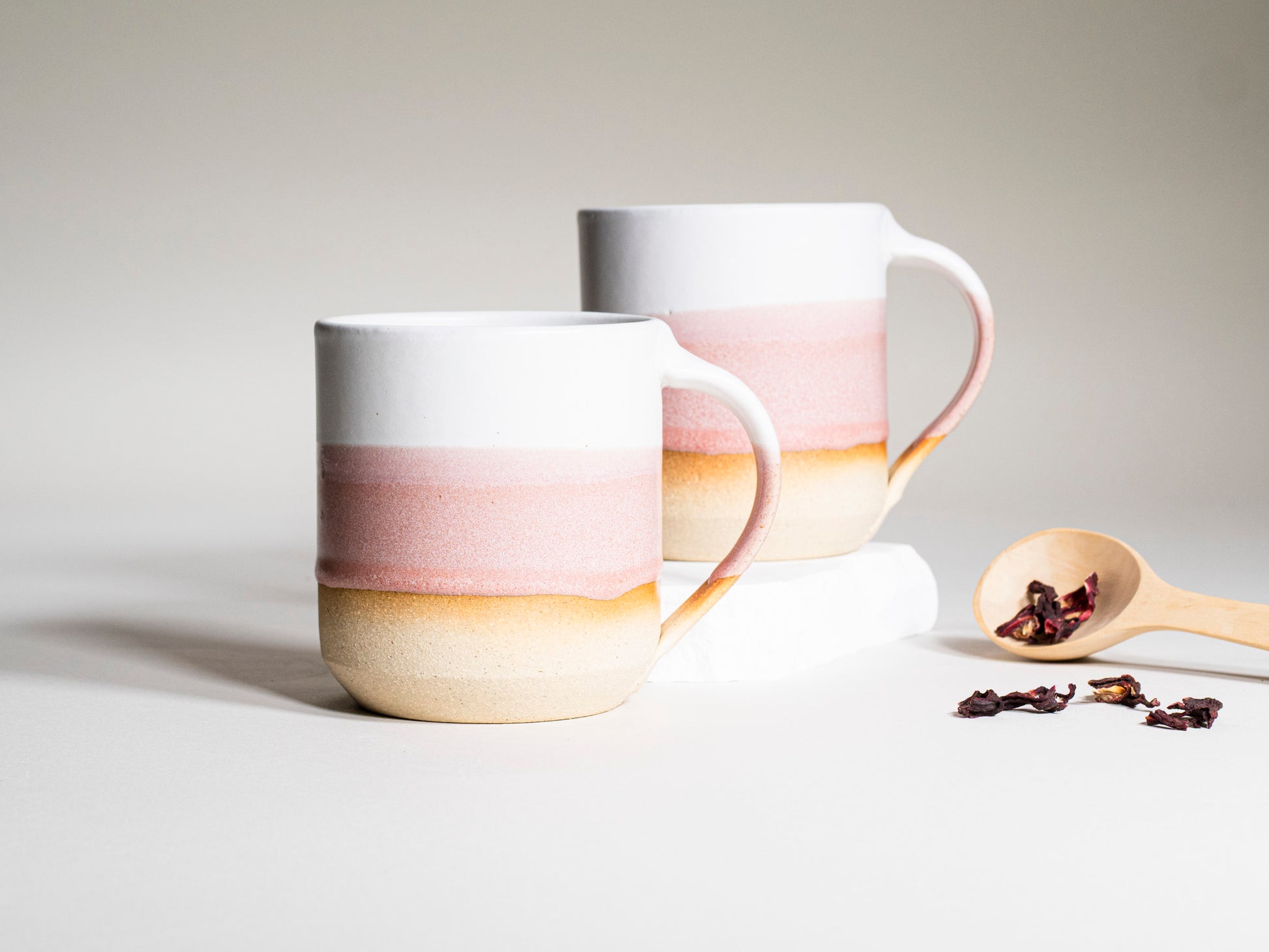 Aesthetic coffee or tea 14 oz mug in pink and white is ideal for a wellness lover or fitness instructor gift. This stoneware tableware supports a healthy lifestyle with both style and function.