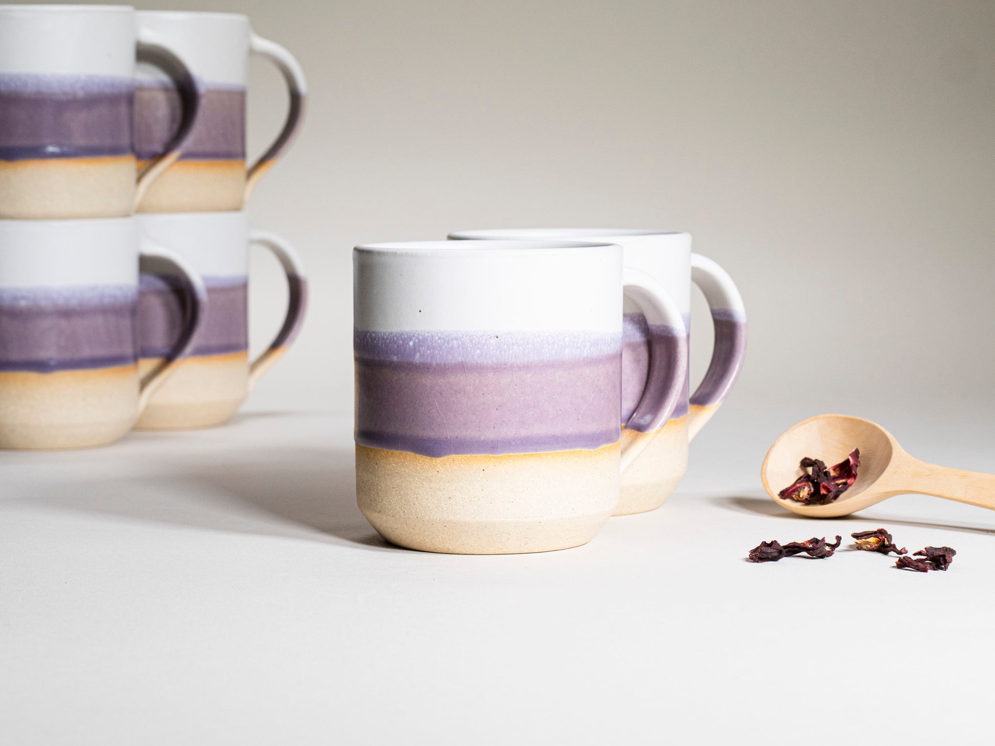 Purple Glaze: varies in the amount of lighter and darker purple (see glaze variations in the photos).