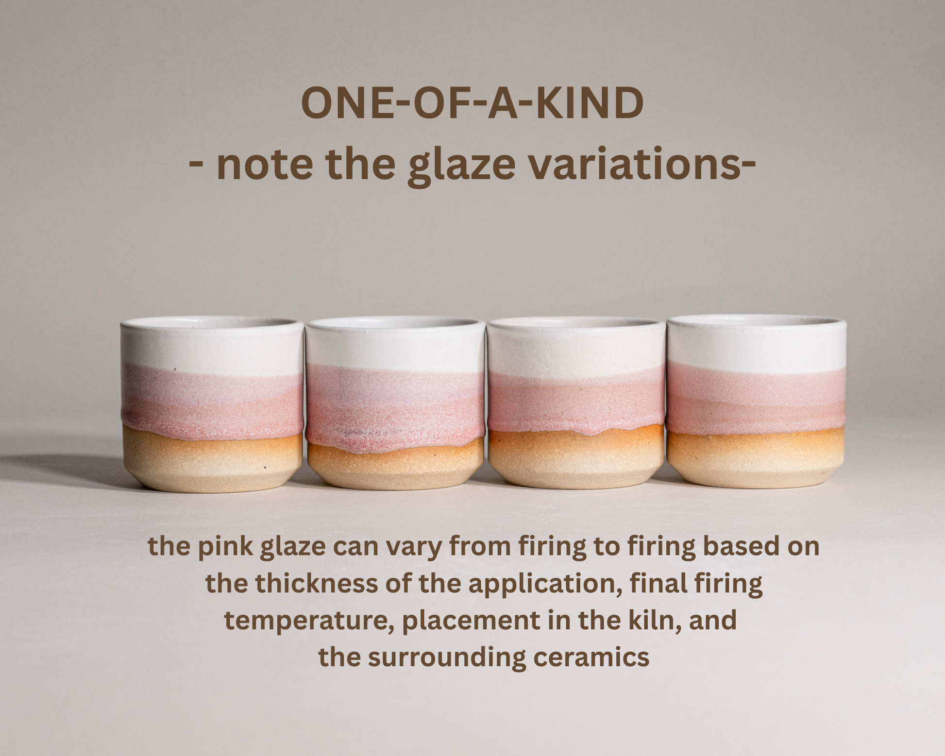 Pink Glaze: varies in the amount of lighter and darker pink.Β