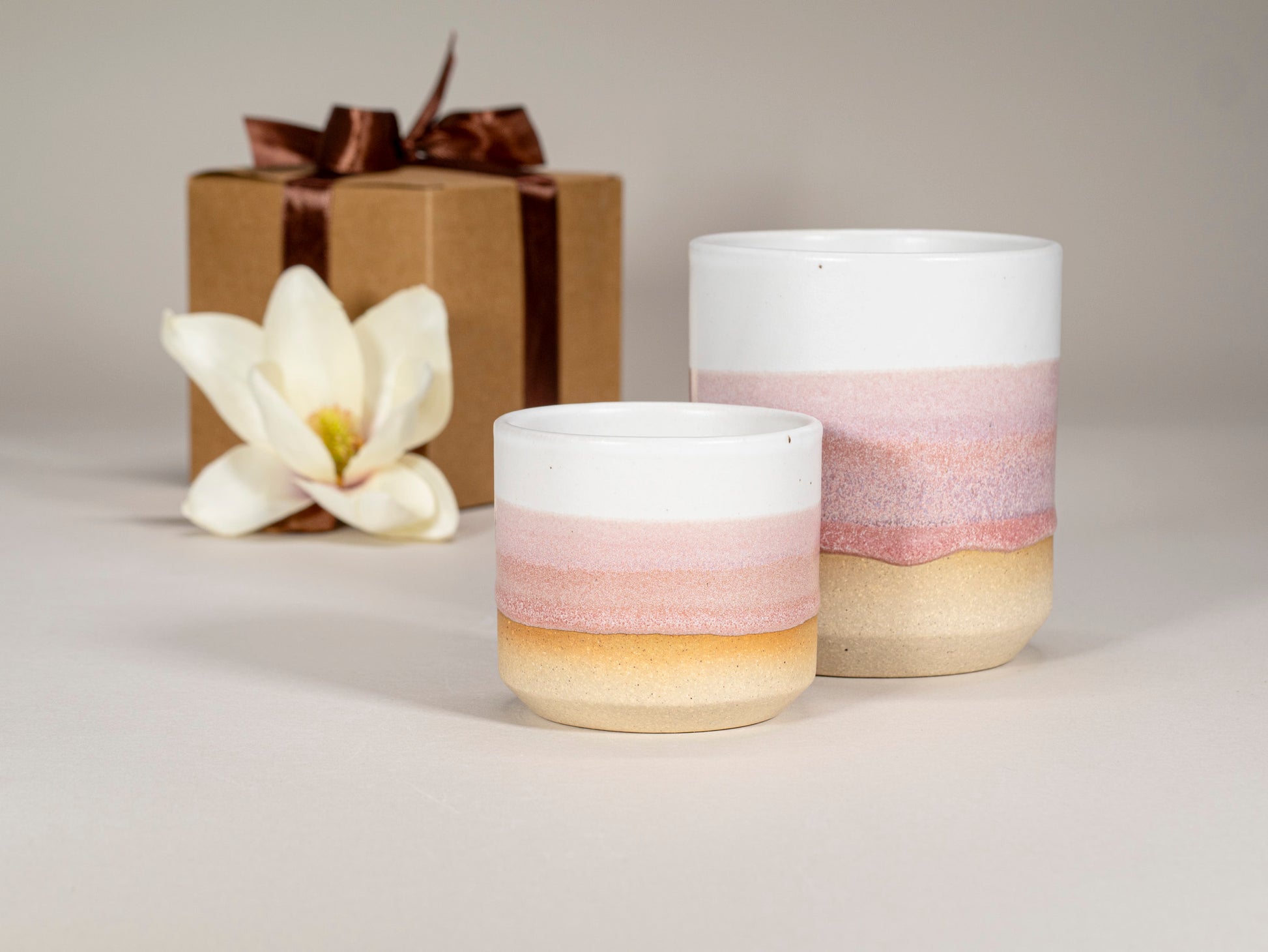 Gift Set: 14 oz cup and 5.5 oz cup in Pink White Stoneware