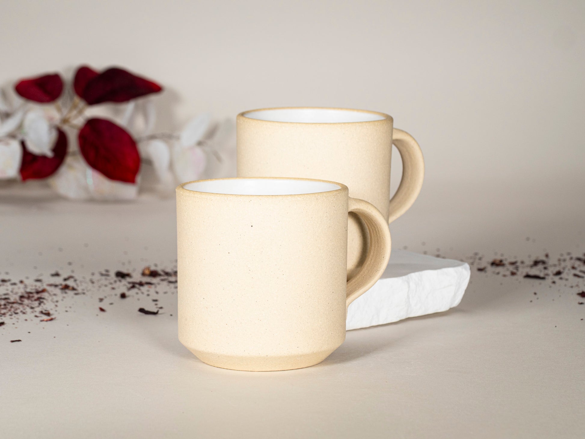 Small Ceramic Coffee Tea Mug Sandy White 8-10 oz Stoneware