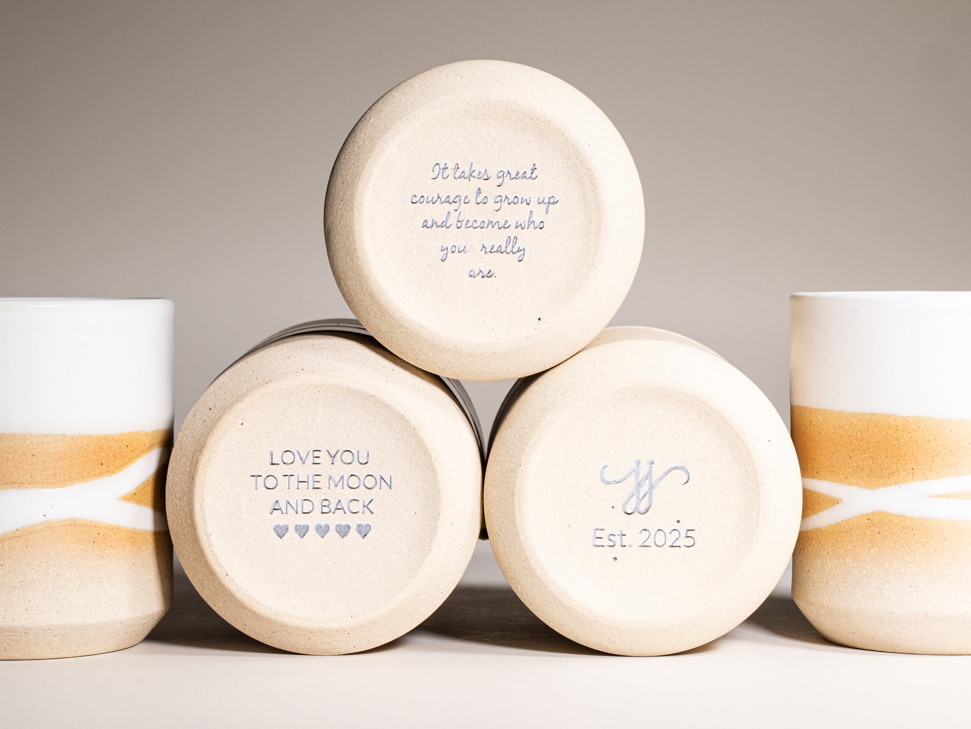 ๐ข๐ฝ๐๐ถ๐ผ๐ป ๐: ๐ฆ๐บ๐ฎ๐น๐น ๐๐๐ฝ๐. If you are having the personalization engraved on small cups such as espresso cups or latte cups, chose option "A" during checkout. The engraving surface is small - please think a short message (few words, max 4 lines). The longer the engraving, the smaller the font.