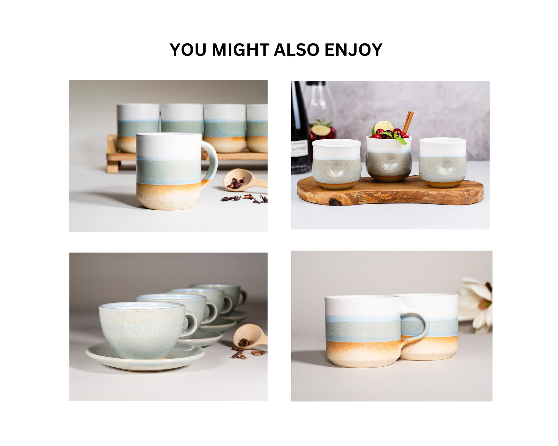 Unique 14 oz smoothie cup in blue grey, and white is ideal for a health enthusiast gift. This stoneware drinkware also makes a stylish addition to summer party settings or a thoughtful housewarming gift.